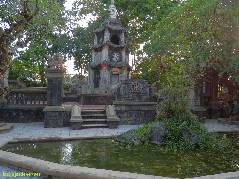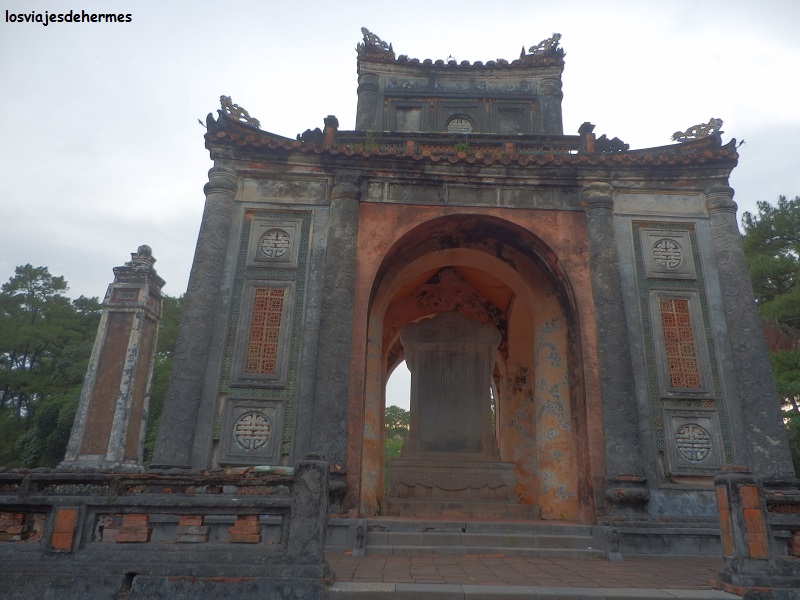 Las tumbas están situadas entre 5 y 15 kms al sur, pues hay varias al igual que hubo varios emperadores, llegando hasta la de Tu Duc (a unos 5 kms desde la estación) en pocos minutos y pagando la entrada de 80.000 VND=2,76 € cada uno. Este emperador tuvo el reinado más largo de la dinastía y diseñó él mismo el recinto, con diferentes pabellones y templos en su honor y en el de la emperatriz, así como un bonito lago con nenúfares en el que daba gusto pasear, en general todo está impecable y una hora y media, que es lo que tuvimos hasta que cerraban, es más que suficiente para verlo bien.