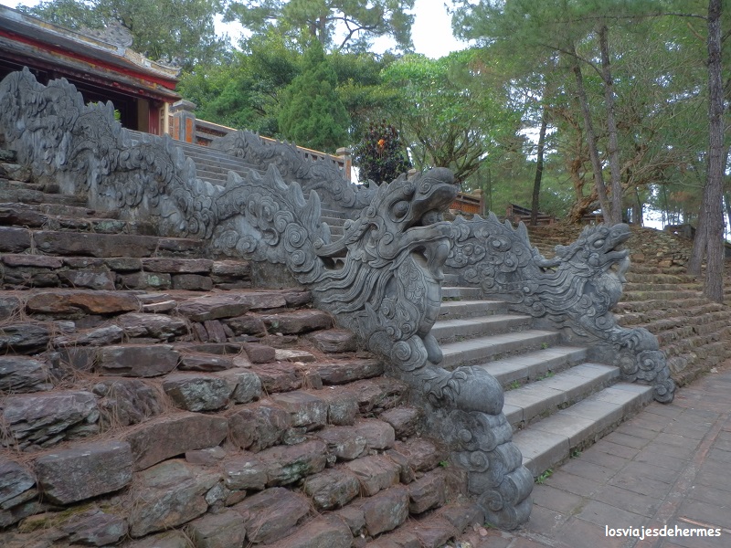 A las 16 horas habíamos quedado con unas moto-taxis (negociamos previamente al llegar a Hué) por 80.000 VND=2,76 € los dos para que nos llevaran a las tumbas reales y nos trajeran de nuevo después de visitarlas, eligiendo, puesto que cerraban a las 17:30 horas, la que a priori era la más importante, la de Tu Duc. Durante 150 años (repartidos en los siglos XVII y XX) Hué fue la capital del país y de los emperadores de la dinastía Nguyen que lo fueron gobernando, de ahí que actualmente esta ciudad de unos 300.000 habitantes sea Patrimonio de la Humanidad con las tumbas reales de dicha dinastía y la ciudadela con los palacios como grandes símbolos.