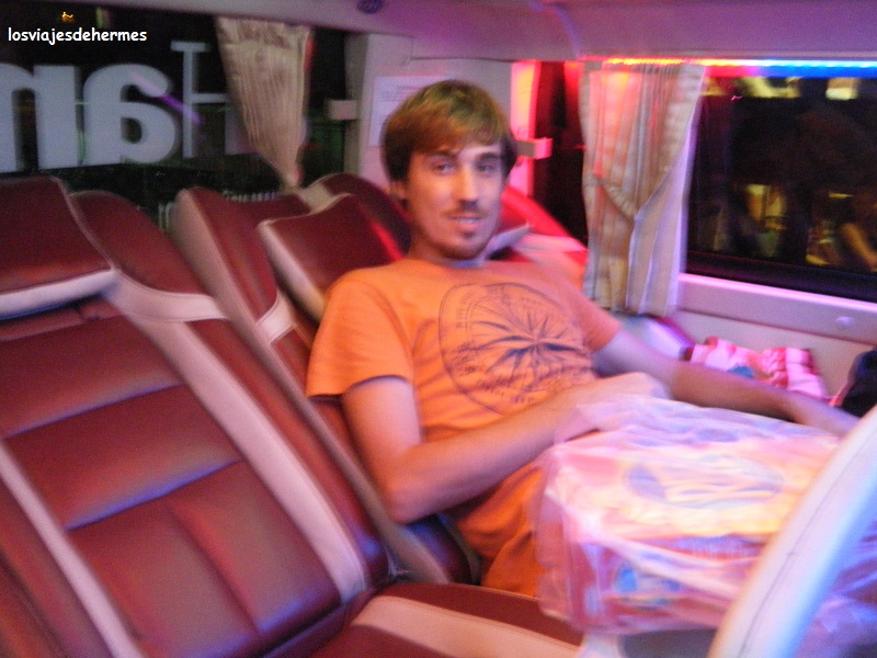 Sin duda que una excursión de este tipo en barco es casi obligatoria para quien decida acercarse a Nha trang. El autobús de la compañía Phuong Nam Express, de color amarillo, salió un poco más tarde de las 19 horas y nos acomodamos en los sitios traseros con ese poquito y fundamental espacio de más, llevando unos bocadillos que habíamos comprado previamente por 60.000 VND=2,07 €. Durante el recorrido paró una sola vez a las 23 horas aproximadamente llegando a Hoi An sobre las 7 de la mañana del día siguiente, lo que se traduce en casi 12 horas de viaje (parada incluida) para hacer los cerca de 470 kms que separan las dos poblaciones, así que es cierto, iba despacito (lo prefiero) descansando algo más y mejor que en el primer viaje en bus nocturno en Vietnam (pero lógicamente no como en el tren o un hotel).
