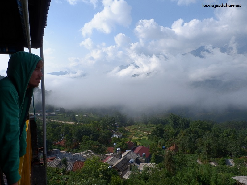 El día estaba nublado con una temperatura más fresca y una prenda de manga larga no venía mal, de hecho, era la primera vez que la usábamos desde que llegamos al sudeste asiático. Tardamos cerca de una hora en llegar a Sapa por una carretera con muchas curvas e impresionantes vistas con grandes caídas y las laderas de las montañas cubiertas de arrozales escalonados, dejándonos la furgoneta en el centro de esta pequeña población de 40.000 habitantes situada a 1.600 metros de altitud que como ya he dicho es el centro turístico de la región. Al bajar un chaval de poco más de diez años nos invitó a seguirlo a un hotel que estaba muy cerca, justo en la calle por la que se iba a la villa de la etnia hmong de Cat Cat y no nos hizo falta ver ninguno más, se llamaba Phuong Nam Hotel (o también Southern Hotel) y estaba en el nº 33 de la calle Fansipan, la habitación era grande, con su baño y toallas, ventilador, wifi (resultó no ir muy bien), limpieza decente pero sobre todo unas vistas abiertas a la montaña que en cualquier otro sitio las cobrarían a precio de oro, todo por 10 $ la habitación doble la noche (pagando en dongs fueron 210.000 VND=7,24 €, unos céntimos menos que en $ como siempre).
