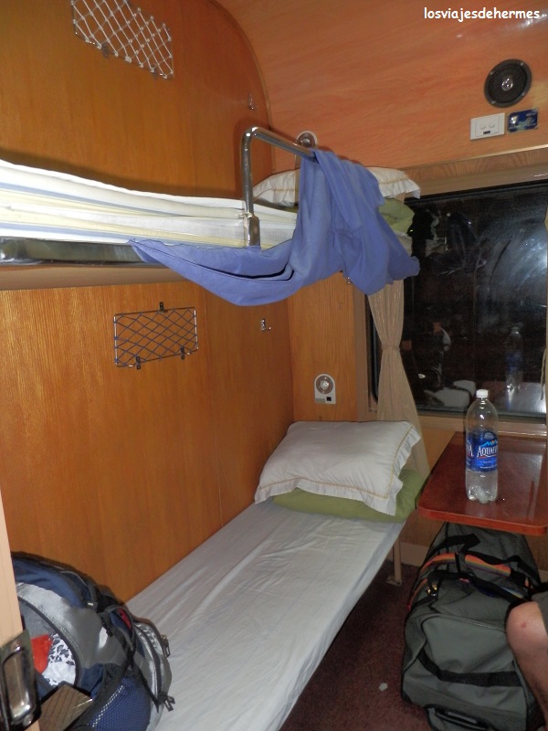 Después de regresar a Hanói de la inolvidable bahía de Halong, esperamos en la estación hasta la salida del tren SP-1 a Lao Cai (lo compramos con anterioridad por 1.060.000 VND=36,62 € cada uno la ida y la vuelta en el tren SP-4, que es un poquito más rápido). A las 21:10 horas salió puntual cruzando parte de la ciudad a no más de 10 km/h entre callejuelas con casas a ambos lados, una pena que fuera de noche y estuviera lloviendo y no poder verlo bien. Como anécdota empezó a diluviar justo al subir al tren y en menos de 10 segundos que tardé en entrar al vagón me calé por completo, asombrado y preguntándome cómo podía ser aquello…pero sí, así es la lluvia aquí cuando cae fuerte.