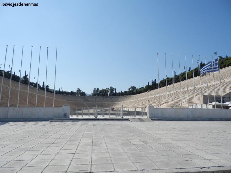Aunque llegamos de madrugada diremos que el segundo día propiamente dicho comenzó al despertarnos, desayunar en un bar cercano y emprender la marcha al cercano y magnífico estadio Panateo, del siglo IV a.C. y restaurado a finales del XIX para albergar los primeros juegos olímpicos de la era moderna, que por desgracia ya no es gratis como lo fue en mi primera visita a Grecia -y primer viaje al extranjero- de fin de curso del instituto, circunstancia por la que junto a lo bien que se ve desde la valla resolviéramos innecesario pagar los 5 € que cuesta la entrada.