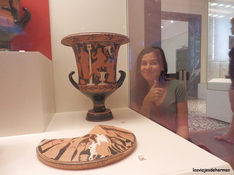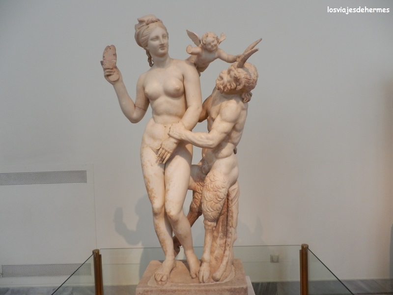 Con acierto aprovechamos las horas en las que el calor aumentaba para visitar el Museo Arqueológico Nacional, utilizando el metro (enlace con el plano) desde Syntagma a Victoria cambiando de la línea 2 a la 1 en Omonia (1,20 € el billete). Desde la parada de Victoria apenas hay que andar 5 minutos hasta el Museo, cuya entrada cuesta 7 €. Nos pasamos allí unas 3 horas buceando entre vasijas, joyas, vasos de vidrio o esculturas de la propia civilización griega, de sus antecesores, de los egipcios, de la Chipre antigua, todo un repaso a la brillante historia de la región que merece la pena hacerse pausadamente, aprendiendo de las múltiples explicaciones (en inglés y griego) que abundan por todo el Museo y sorprendiéndose por la precisión y perfección de muchas de sus obras, como por ejemplo los “kouros”, la máscara de Agamenón o la escultura donde Afrodita intenta sacudirle un zapatillazo al sátiro Pan por cansino, una escena de lo más cotidiana vaya D).