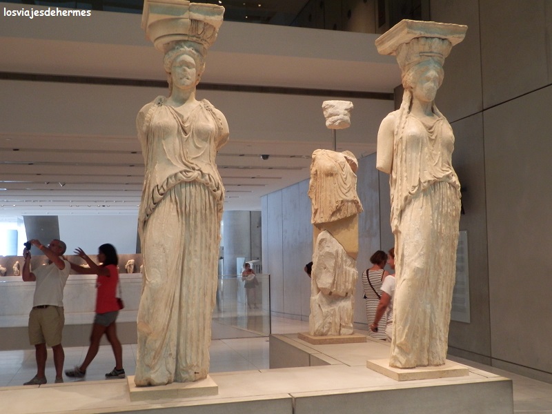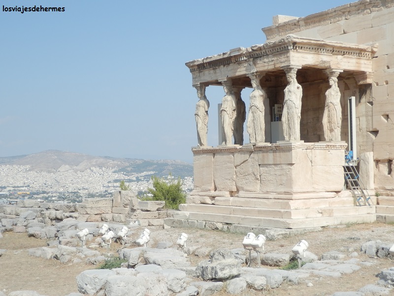 La Acrópolis es el legado por excelencia de la época dorada de la ciudad allá por el siglo V a.C. bajo el mando de Pericles y desde luego un monumento que hay que visitar una vez en la vida. La entrada a la zona monumental está flanqueada por la puerta Beulé y el templo de Atenea Niké, accediendo al recinto en el que ya destaca, como no podía ser de otra manera, el Partenón, construido en su totalidad con mármol pantélico y en el que los progresivos trabajos de restauración ocasionan que se vea algún que otro andamio. El otro punto más importante del complejo es el Erecteión, famoso por las Cariátides, aquellas esculturas de mujeres que hacen de columnas que seguro todos tenéis en la cabeza. Hago constar que en todos los monumentos hay carteles en inglés y griego que permiten profundizar en la función e historia de estos.