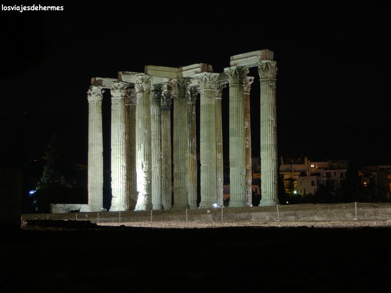 Para cenar regresamos a Monastiraki con la idea fija de probar un “gyros” o lo que es lo mismo la versión griega del kebab, encontrando un sencillo restaurante donde apenas nos gastamos 7 € entre los dos, emprendiendo después el camino de regreso al hotel por la calle Ermou hasta Syntagma y pasar de nuevo junto al Templo de Zeus para ver su iluminación nocturna. Todos los puntos visitados están a poca distancia andando, si bien a lo largo del día fuimos sumando metros en nuestras piernas, la única pega fue no llegar hasta el yacimiento de Keramikos y eso que estaba incluido en la entrada a la Acrópolis, pero nos quedamos sin tiempo material para ello.