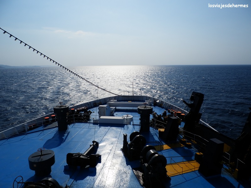 Sólo quedaba ya ir hasta el muelle de salida previsto teniendo en cuenta que El Pireo suma varios kilómetros de amarres y zonas de atraque divididos en función de las zonas de destino, razón por la cual existe un más que necesario autobús gratuito que va recorriendo el puerto con diversas paradas en las mencionadas zonas. Por fin embarcamos y poco a poco fuimos alejándonos a bordo del “Nissos Rodos” dejando la bella capital griega a nuestras espaldas y con proa al azul intenso de las aguas del Egeo, y es que sin ninguna duda navegar debe ser parte indispensable de cualquier viaje que se precie a las islas griegas.