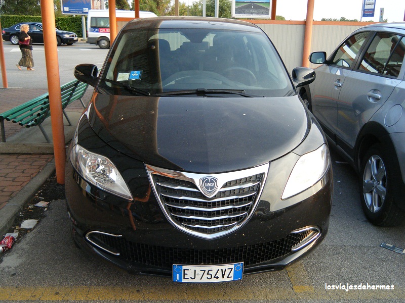 Para este viaje salimos del aeropuerto de Manises (Valencia) con rumbo a Trieste (Italia). El vuelo de Ryanair (115 € los dos y con una maleta facturada) duró un poquito más de dos horas llegando a las 21:30, algo tarde teniendo en cuenta que teníamos unos 90 km hasta Rijeka. Recogimos en Hertz el que sería nuestro coche para los próximos 17 días, un Lancia Ypsilon, reservado en la web por 316 € con seguro básico, incluido Croacia, aunque no para Bosnia ni Montenegro, como nos daríamos cuenta después.