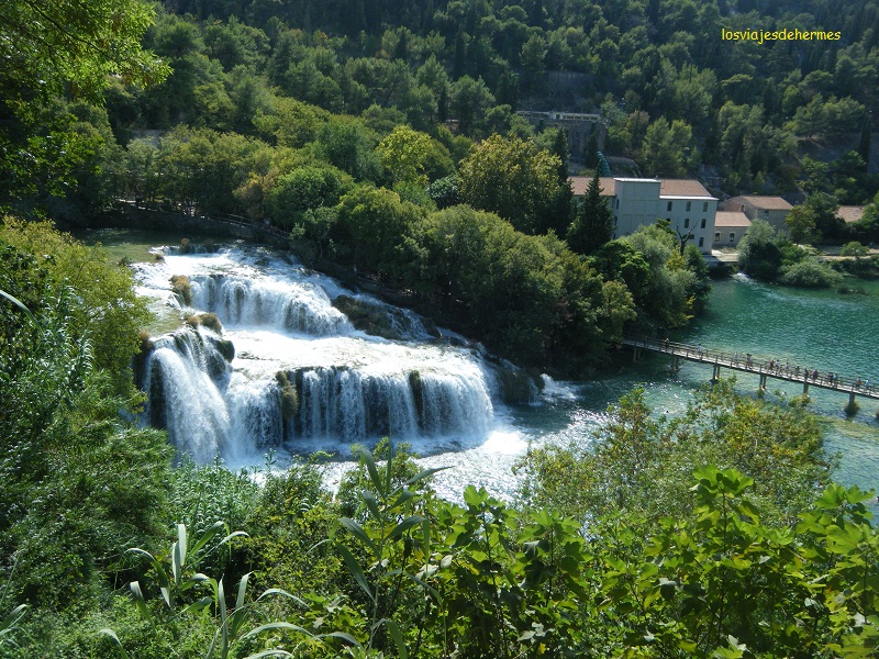 Después del viaje en barco, que tienen unos horarios determinados y expuestos en Skradin, llegamos a las cascadas, que son simplemente espectaculares. Lo de nadar delante de semejante escenario es difícil de superar, dan ganas de no moverse de allí en días. Había menos gente de la que esperábamos (era domingo) y se podía nadar sin problemas. Comimos allí mismo de picnic con nuestras provisiones, aunque hay un par de sitios para comprar cosas, pero son caros. Luego tocaba una larga y bonita caminata de hora y media rodeando toda la cascada principal por un camino señalizado, atravesando pasarelas de madera sobre el agua y con unas vistas maravillosas, además se ven los restos de una planta hidroeléctrica de 1895 y un molino de agua. Cuando acabamos tuvimos tiempo de irnos otra vez al agua, antes de coger el barco de regreso a Skradin a las 17:30.