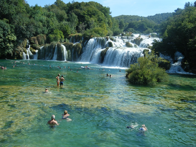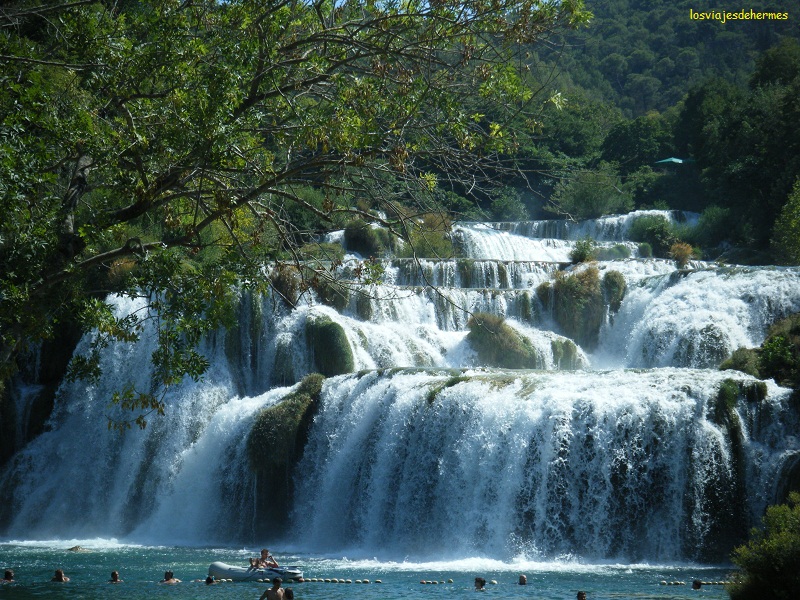 Hoy tocaba un día fuerte y una visita a un parque menos conocido que Plitvice (del que hablaré después) pero imprescindible. Las opciones para visitarlo son múltiples, con varios accesos y diferentes zonas, pues hablamos de una extensión importante (109 km²) siguiendo el curso del río Krka, con una variada fauna y flora y especialmente interesante por la cantidad de cascadas y saltos de agua que hay. Nuestra opción fue ir a Skradin, para coger el barco (incluido en la entrada i/v) hasta las cascadas de Skradinski Buk, donde el baño está permitido.