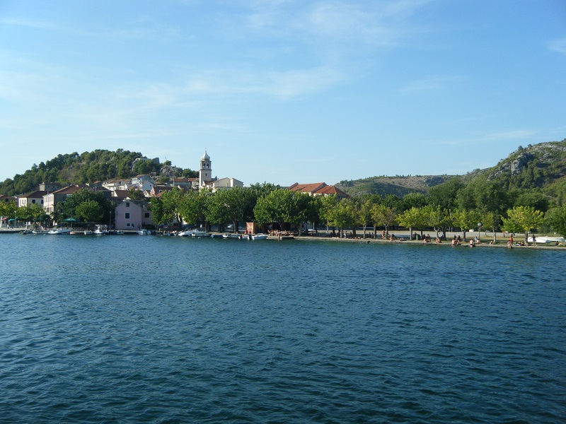 Para aprovisionarnos fuimos al supermercado “Konzum”, que es uno de los más importantes de Croacia y tiene una sección de comidas preparadas que está bastante bien, y ya retomamos la ctra. 8 dirección Sibenik, de la que nos separaban 70 km. En el trayecto nos desviamos por la ctra. 59 a la isla de Murter, pequeña y tranquila, que está unida con un puente, paramos varias veces e incluso tomamos otro baño y una siesta en la animada playa urbana de Betina, haríamos unos 25 km extra por la isla antes de volver a la ctra. 8.