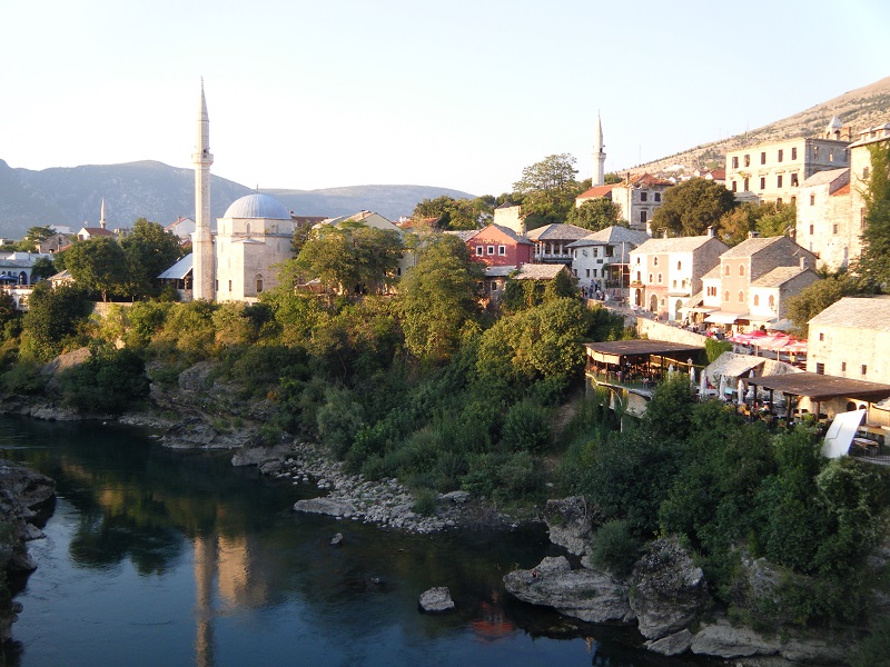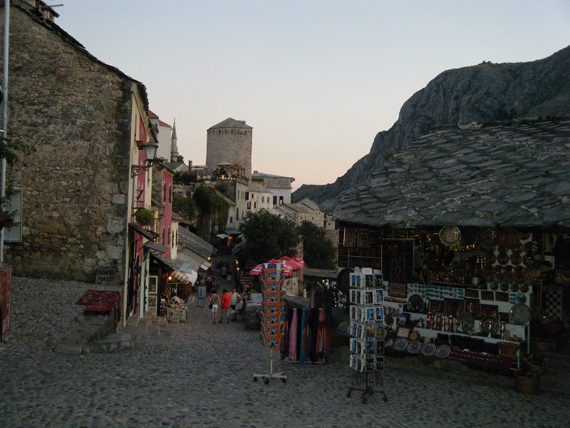 Y ya por fin a pasear por el animado centro con todo tipo de tiendas y restaurantes, visitando el puente viejo (Stari Most) reconstruido en 2004 tras su destrucción durante la guerra, la torre del reloj, la mezcla de templos religiosos (sobre todo mezquitas y algunas iglesias, pero cada uno en “su” parte de la ciudad). Hoy en día da gusto estar por Mostar, ciudad de unos 130.000 habitantes que pese a su rico pasado es tristemente famosa por el asedio que sufrió en la guerra de los Balcanes, y eso queda claro si uno se va por la calle Bulevar hasta la Plaza de España (que recuerda a los soldados españoles que allí estuvieron) y observa las ruinas de las casas entre edificios más recientes, algunos con carteles de “ruina peligrosa”, o el esqueleto de alguna construcción destruida.