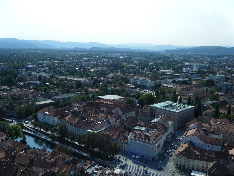Después de acomodarnos y que en la recepción nos informaran de todo y dieran un plano, nos vamos al centro andando, unos 20 minutos, atravesando el parque Tívoli y paseando por el pequeño centro, que está recogido entre dos colinas. La ciudad está impecable y se respira un aire de tranquilidad más propio de una ciudad escandinava que del sur de Europa. En el centro destacan los puentes sobre el río Ljubljanica, como el de los Dragones, el Cobbler o el puente triple, la iglesia franciscana, la plaza del congreso, la universidad, la iglesia de San Juan y por supuesto, el castillo. Todo cerca para ir a pie.