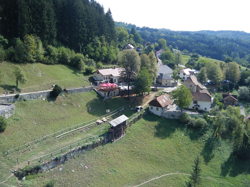 Para acabar este intenso viaje (salíamos para Valencia desde Trieste a las 21 h) teníamos la mañana y un poco de tarde para visitar dos de las principales atracciones del país, el castillo de Predjama y las cuevas de Postogna. Para ello hay que tomar la A-1 hasta Postogna (45 km) y salir en dicho pueblo. Justo al pasarlo está el parking de las cuevas, y de ahí al castillo 8 km, nosotros fuimos primero al castillo, donde compramos una entrada conjunta para las dos cosas por 27,90 € yo, y 22,30 € Charo con un carnet de estudiante (a tener en cuenta esto para los descuentos).