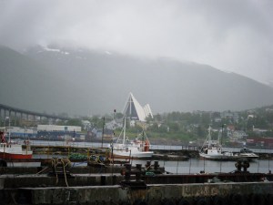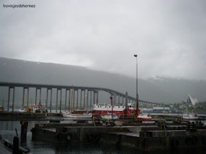 Tromsø es una de las ciudades más boreales del mundo (por encima del círculo polar Ártico) y cuenta con unos 65.000 habitantes, con un centro pegado al fiordo muy recogido y con la Catedral del ártico y el puente Sandnessun como puntos destacados. Nos levantamos temprano, desayunamos y recogimos nuestro primer coche de alquiler para la excursión a Cabo Norte, en principio era el más económico pero como no tenían nos dieron un Toyota Avensis por lo que salimos ganando, con GPS y todo, el precio 120 € en Avis para dos días, además la oficina estaba muy cerca del hotel.