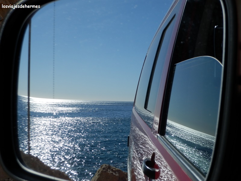 Si hay una ventaja de la furgo que destaque sobre las demás, es la posibilidad de pasar la noche donde uno quiera, y despertarse a unos 10 metros de la orilla como mucho con el suave sonido del mar, mientras el sol empezaba a levantarse y los primeros rayos de sol se introducían en la furgo fue una buena opción, doy fe de ello. La foto os lo contará mejor, abrimos el portón trasero para que además entrara de lleno la brisa y no tuvimos prisa ninguna por desperezarnos, una experiencia tan agradable como recomendable.