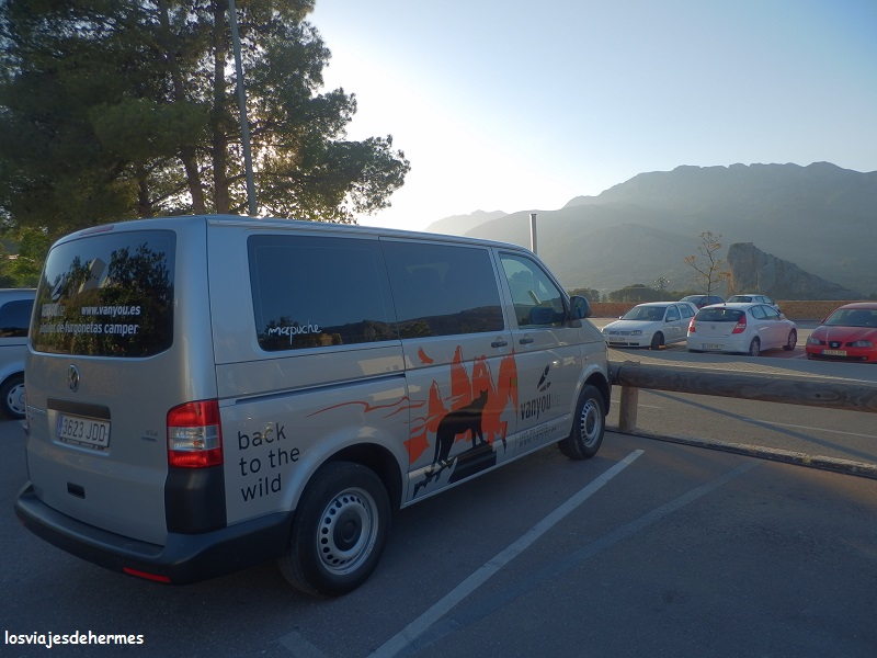 Transporte: furgo camper alquilada en Vanyou (están en Valencia), siendo el modelo “lite”, es decir sin techo elevable (y a decir verdad no lo echamos en falta), que cuesta 75 € al día en temporada media por lo que la reserva de dos días ascendía a 150 €, teniendo una limitación de 250 kms diarios (0,20 € el kilómetro extra) que desaparece si el alquiler es más largo, como siempre lo mejor es consultar su web para informarse. En esta ocasión nos llevaríamos y casi estrenaríamos a Mapuche, una amplia y cómoda Volkswagen Transporter de 114 CV que todavía no tenía ni cuaderno de usuarios.