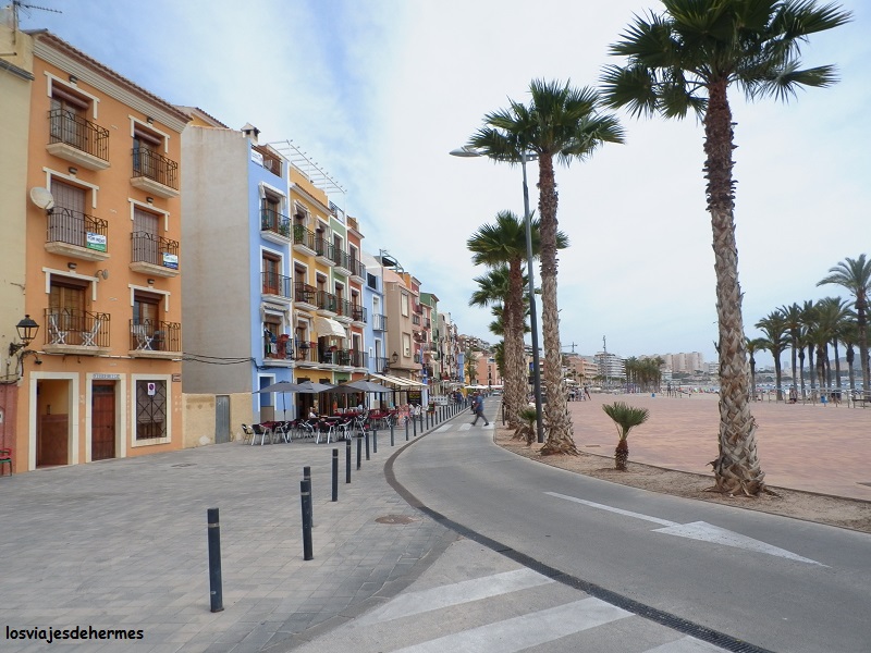 Con el calor apretando ya nos dirigimos a Villajoyosa por la CV-70 que va de Guadalest a Benidorm pasando por Polop y de la meca turística de la Costa Blanca a la capital de la comarca por la N-332, sumando aproximadamente 30 kms, donde se mezclaban agradables paisajes con la vorágine de edificaciones que inunda la costa alicantina. En Villajoyosa aparcamos en una explanada llena de vehículos junto a la playa Centro y nos dedicamos a tomar el sol mientras recorríamos el animado paseo marítimo, y es que, aunque fuera mayo, con el calor que hacía, la playa estaba a tope. Para comer subimos a la Avenida del País Valenciano (calle principal) encontrando “El Templo de las Ensaladas” en el número 24, dejándonos asesorar por el simpático camarero húngaro que llevaba el local en cuanto a la ensalada y pizza que pedimos y por lo que pagamos unos 18 € para los dos.