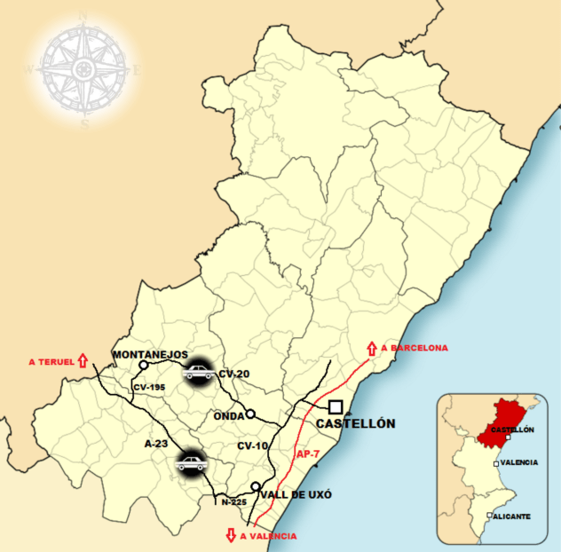 Itinerario: directos desde Castellón, ida por la A-23 (casi 100 kms) y vuelta por la CV-20 (70 kms).