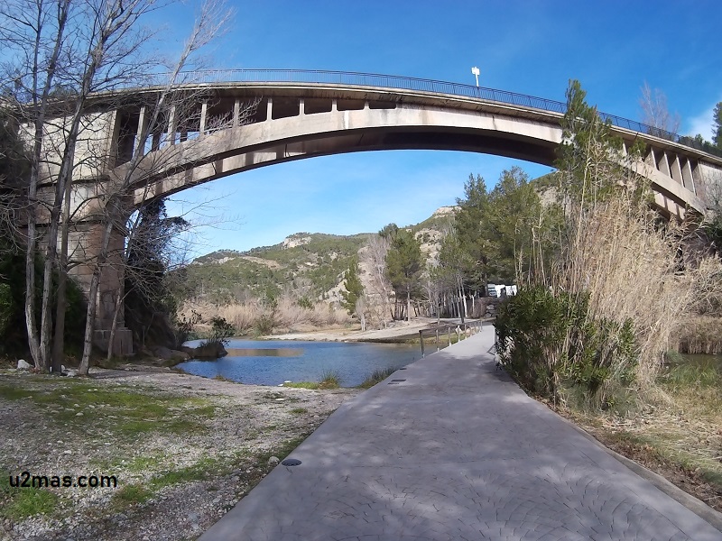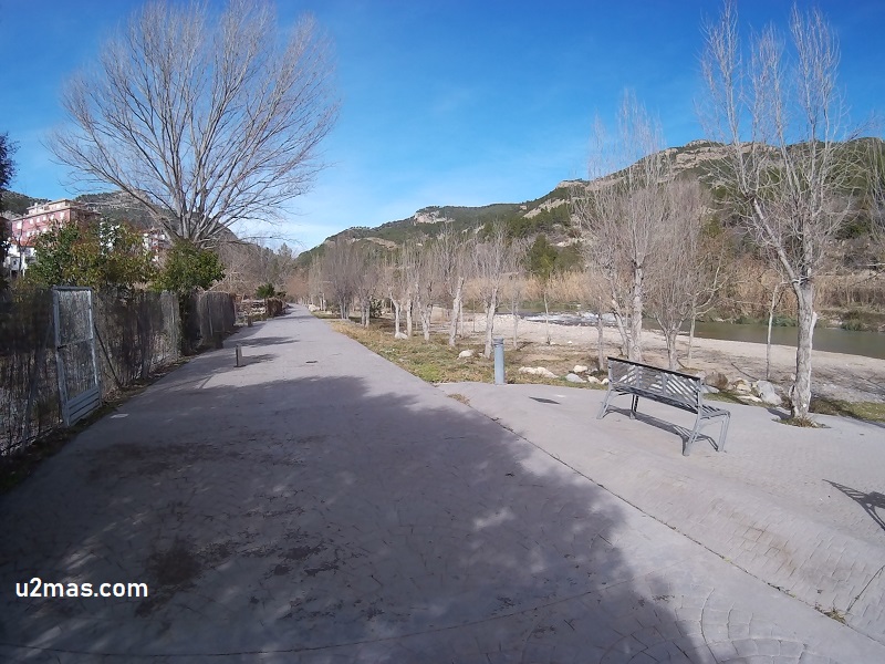 Desde esta zona hasta el pueblo hay todo un paseo con bancos y demás junto al río, que resulta muy agradable para estirar las piernas o hacer un poquito de deporte. También existen pequeños senderos para recorridos más bien cortos, como el que llega al abrigo de Rufino, que no lleva ni media hora. Hacia Teruel hay un par de sitios buenos en los que parar, el primero son los túneles desde los que se puede ver una enorme pared y acantilado que es muy popular entre los aficionados a la escalada, y un poco más adelante la presa y pantano de Arenoso, con paneles explicativos sobre el pueblo que quedó inundado y en el que es posible alquilar kayaks.