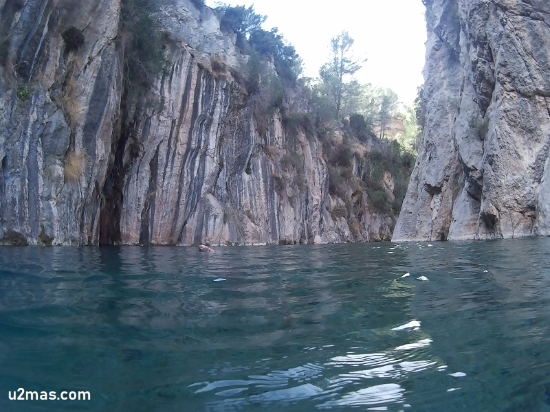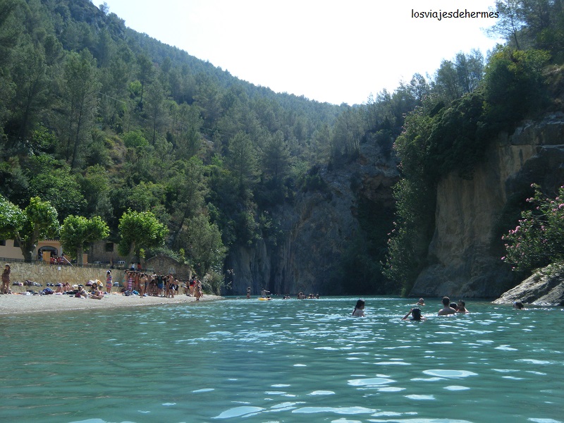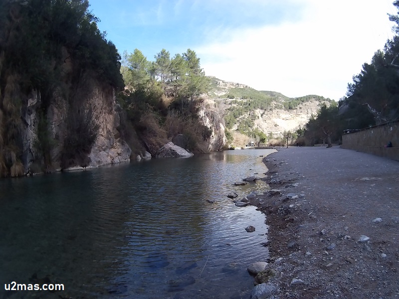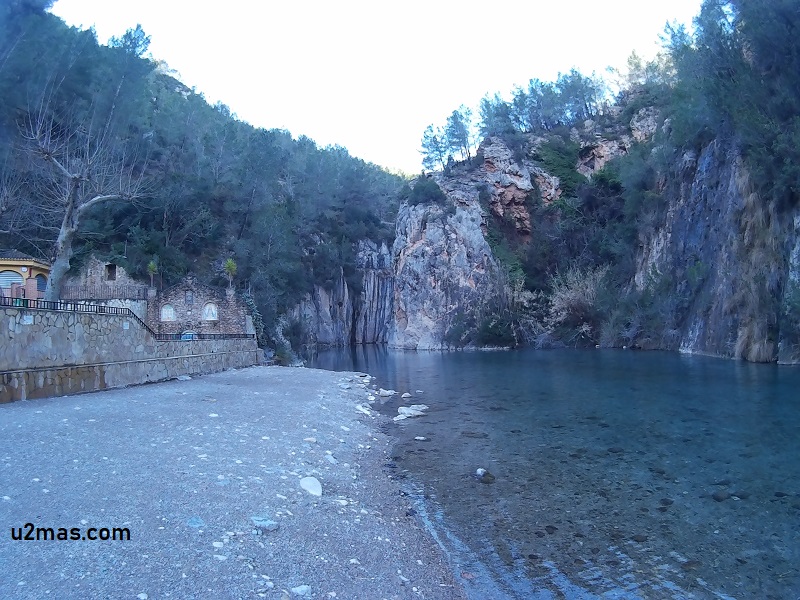El curso del río Mijares pasa por aquí entre paredes de roca, con alguna gruta e incluso pequeñas cascadas. Se hace pie en buena parte de la zona, pero también hay otras que pueden tener 5 metros de profundidad o más, existiendo también en uno de los extremos, justo por el puente que cruza el río, un par de toboganes para los niños. La verdad es que nadar en esta zona merece la pena, y si os atrevéis en invierno, que estaréis prácticamente sólos (siempre pueden aparecer más valientes), y con el importante contraste de temperatura en el exterior, será muy gratificante.