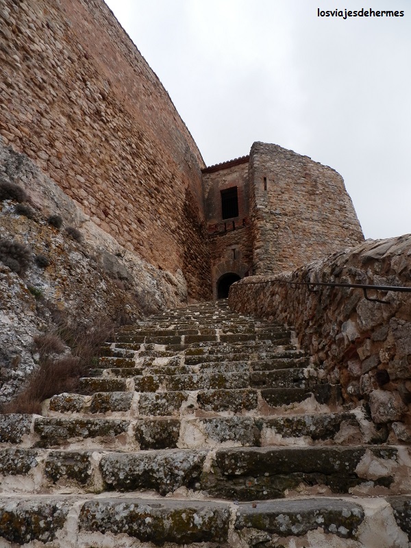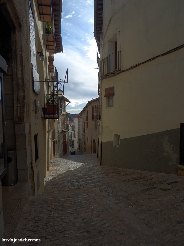 Poco antes de llegar hay que subir las curvas del puerto del Querol, hasta que se observa la preciosa estampa de la ciudad, dominada por el castillo en lo alto, la cual invita a detenerse ya sea para hacer fotos o simplemente disfrutar de la panorámica. Hacer constar que en breve se abrirá un nuevo tramo de la N-232 que quitará buena parte de las curvas y ahorrará tiempo también. Aparqué sin problemas, por ser diciembre, cerca de la puerta de San Miguel, pero fuera del casco urbano (dentro sólo los residentes pueden pasar), yendo a continuación a la oficina de turismo que está convenientemente ubicada nada más cruzar la mencionada puerta, que dicho sea de paso se encuentra en perfecto estado.