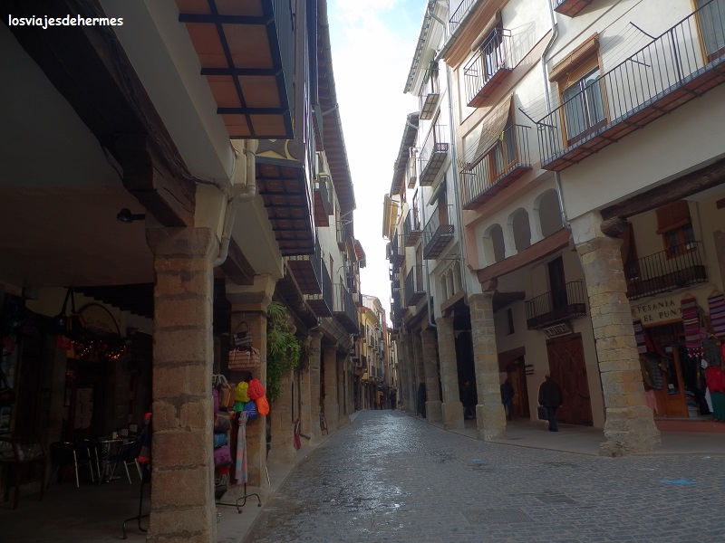 Nos atendieron estupendamente, pudimos coger un plano y nos comentaron la posibilidad de comprar la entrada combinada como mejor opción, costaba 8 € por persona y daba derecho a visitar la puerta de San Miguel (por separado costaba 3,50 €), el museo de dinosaurios (2 €), la basílica arciprestal (2,50 €) y el castillo (3,50 €), así que como veis salía rentable y si se quiere ver todos estos sitios es ideal. Paseamos por las calles principales del casco antiguo dentro del recinto amurallado, como la calle Blasco de Alagón con sus encantadores soportales llenos de bares, restaurantes y tiendas de productos típicos de la zona como embutido o miel, realmente sólo faltaba un vestuario adecuado para imaginarse uno mismo varios siglos atrás. Llegamos hasta la plaza de Estudi en la que, según dicen, está el reloj de sol más grande de Europa, además de tener muy buenas vistas de los alrededores, regresando después a la calle central a comer de tapas en uno de los bares.